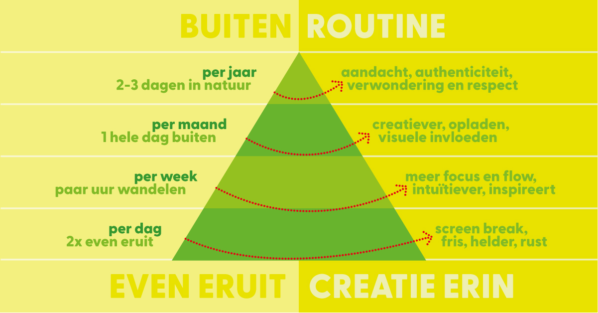 Eruit met die kerstboom 🌲. Meer ruimte in huis. En ook in mijn hoofd. Even eruit. Ik bewandel 'de natuurpiramide'. Op mijn eigen manier - Pien’s piramide 😂 Buiten zijn verscherpt mijn blik. Tussen de bomen komen mooie ideeën. Goeie flow, fijne focus. Alles loopt en stroomt. ‘Even eruit’ past bij mijn manier van ontwerpen. Noem het ‘the Pien Routine’…